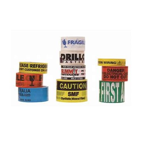 Printed tapes including "Fragile tape, Top Load Tape, Handle With care, Urgent tape produced in a durable PP and also available in PVC.